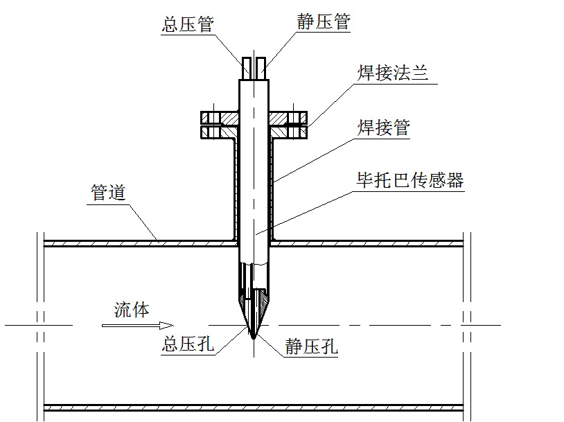 4、安裝簡便:只需在管道合適位置上開一個25~60mm的孔,把傳感器插入管道中心即可。