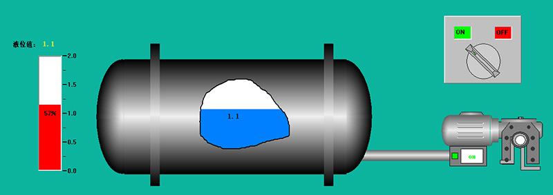 軟件樣圖中所示,用戶不僅可以通過軟件界面直觀的讀取儲罐的液位數據,還可以通過點擊右上角的開關直接對現場的電機供電開關進行控制。