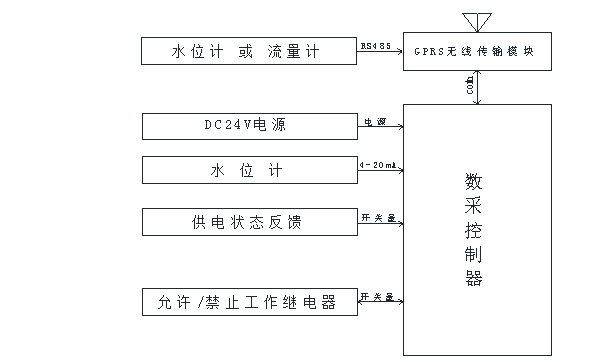 在公司中控室設監控中心,配置服務器,安裝實時監控管理系統;在各液位監測點安裝數采控制器和DTU模塊,監測液位及開關狀態等數據,并可遠程控制燃料機供電,DTU模塊內配置一張物聯網卡,通過運營商網絡平臺將監測數據傳輸至監控中心管理系統軟件。借助運營商網絡平臺傳輸數據,只要有手機信號的地方就可以進行無線數據傳輸。